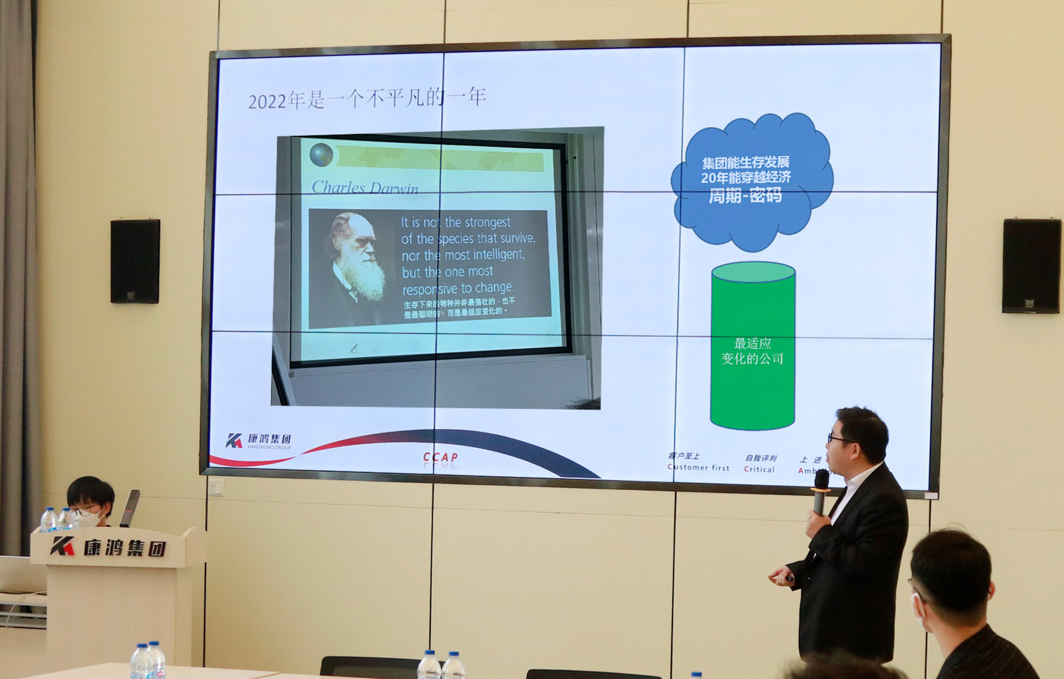 2023年1月10日,康鸿集团及旗下所有子公司于康鸿智能生态园召开2022年终总结大会,总结经验,辞别2022,再战2023。