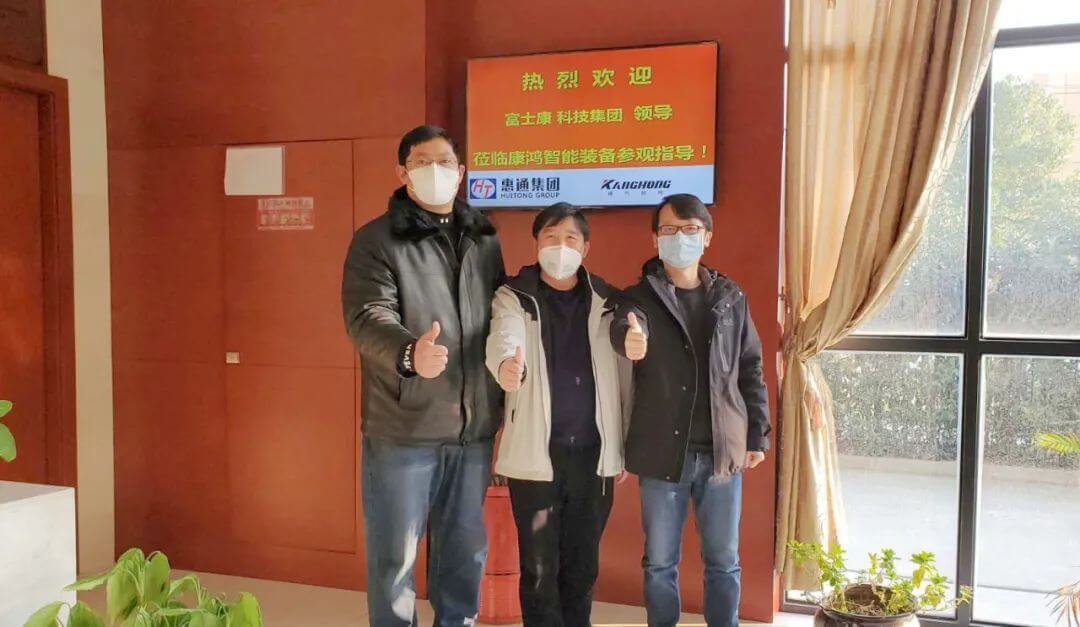 富士康科技集团领导与康鸿智能董事长赵国满(中间)合影留念